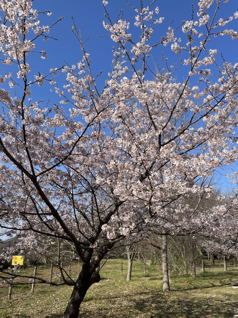 室内を見て急な坂道を上がってきたら、少し早いですが桜が咲いていました。