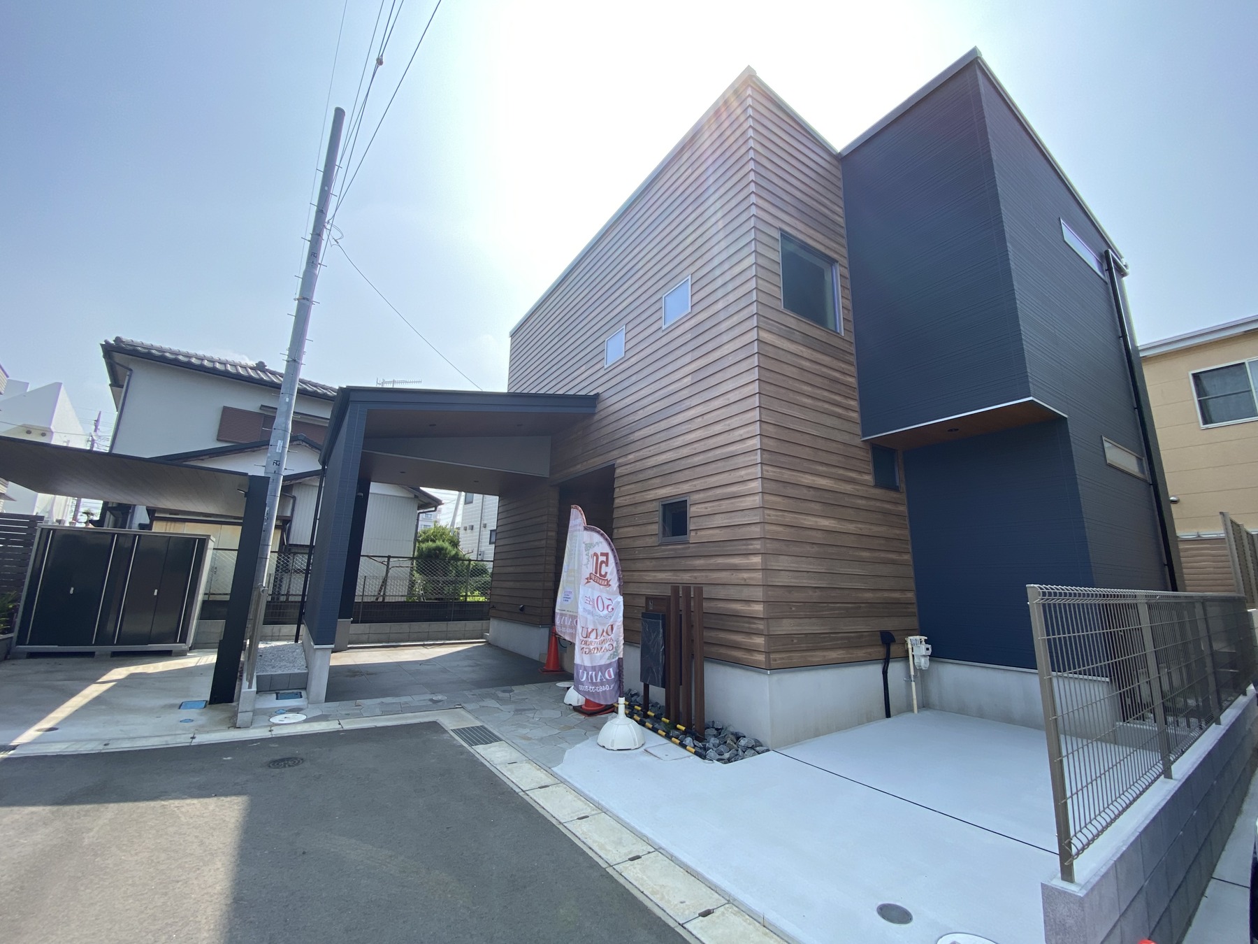 太陽光発電システム搭載のZEH建売住宅が登場!天然木を張り上げたようなリアルな木目×ネイビーのコントラストが美しいスタイリッシュな外観。時間や天気に左右されないランドリールームを完備。収納豊かな間取設計。ガレージ付きで大切なお車を風雨・日差しから守ります。いつもいつまでも家族が笑顔で幸せに過ごせる、そんな快適な住まいをご提案致します。