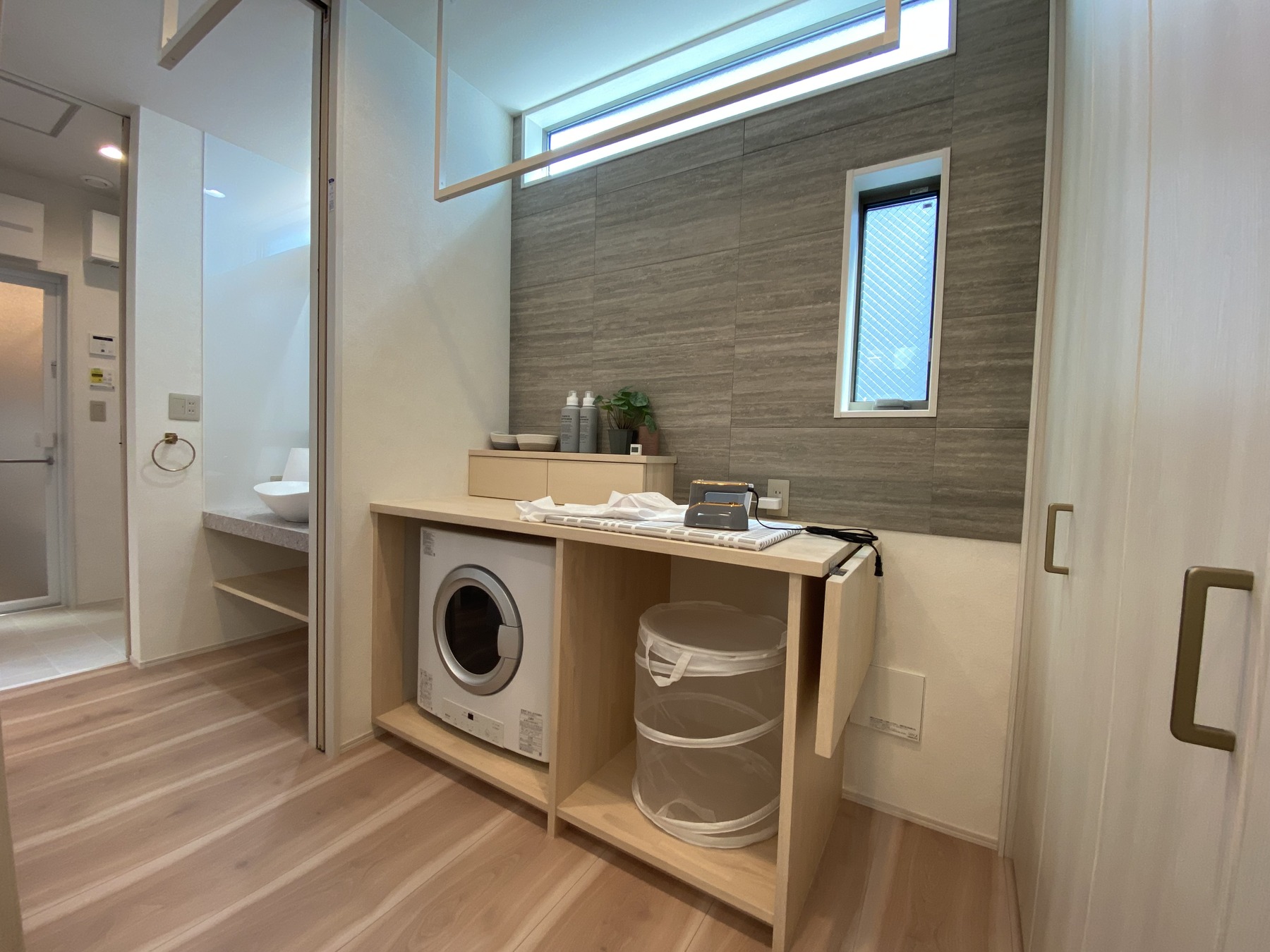 使いやすさを考え、デザインにもこだわった広々洗面室