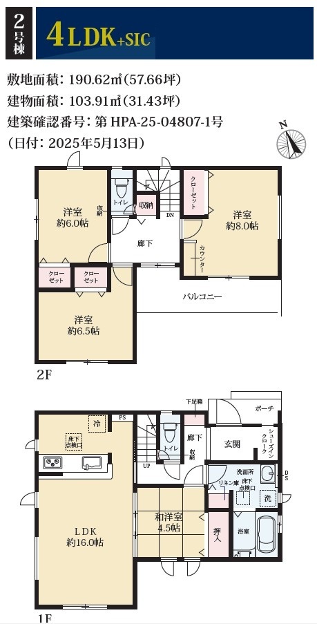 | 建物現況 | 完成済 | 建築確認番号 | 第HPA-25-04807-1号 |