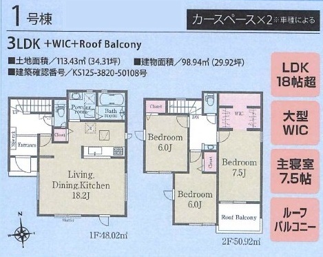 | 建築確認番号 | KS125-3820-50108号 | 駐車スペース | 2台(カースペース) |
