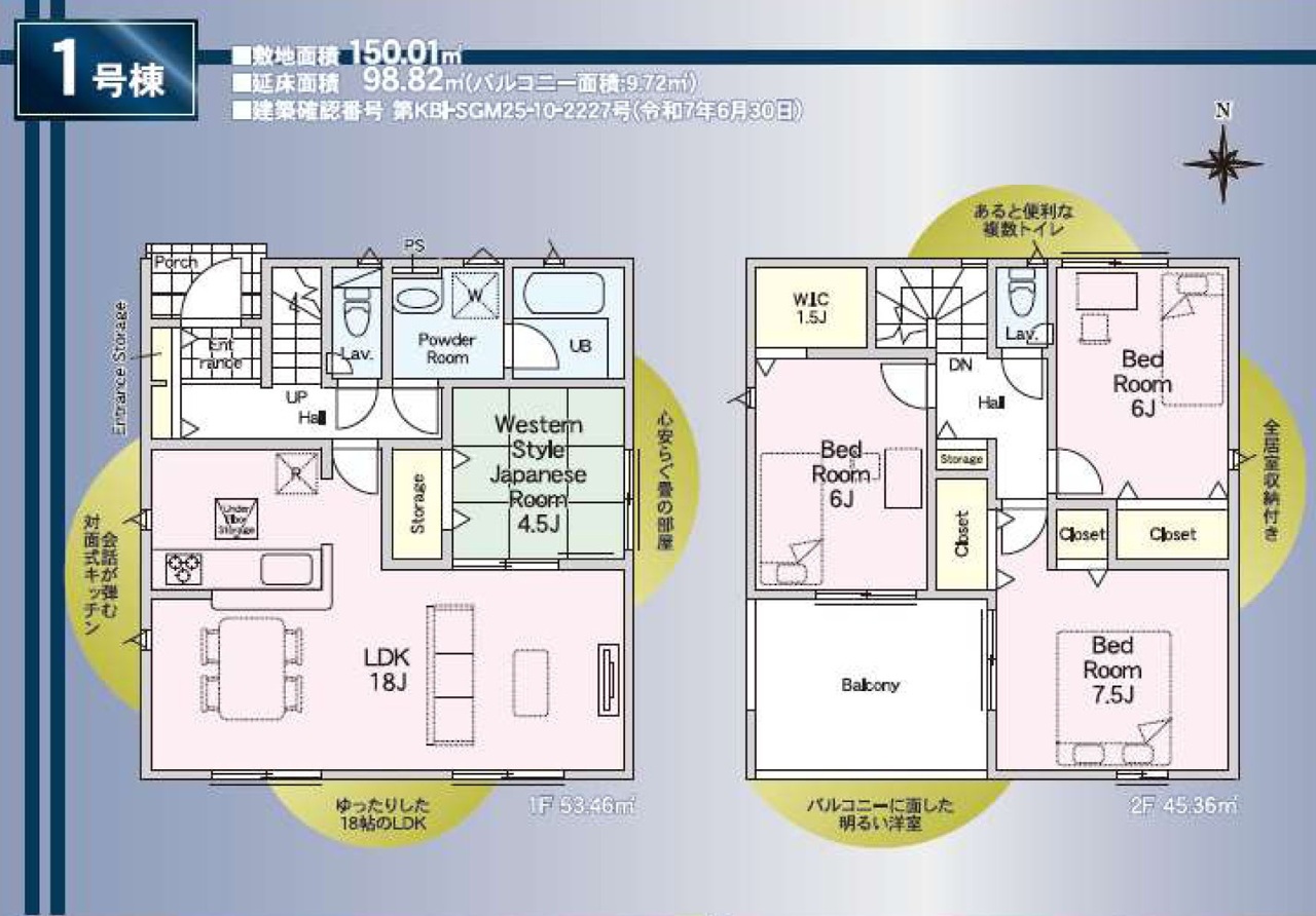 | 間取 | 4LDK (LDK18帖、和室4.5帖、洋室6帖、洋室6帖、洋室7.5帖) | ||