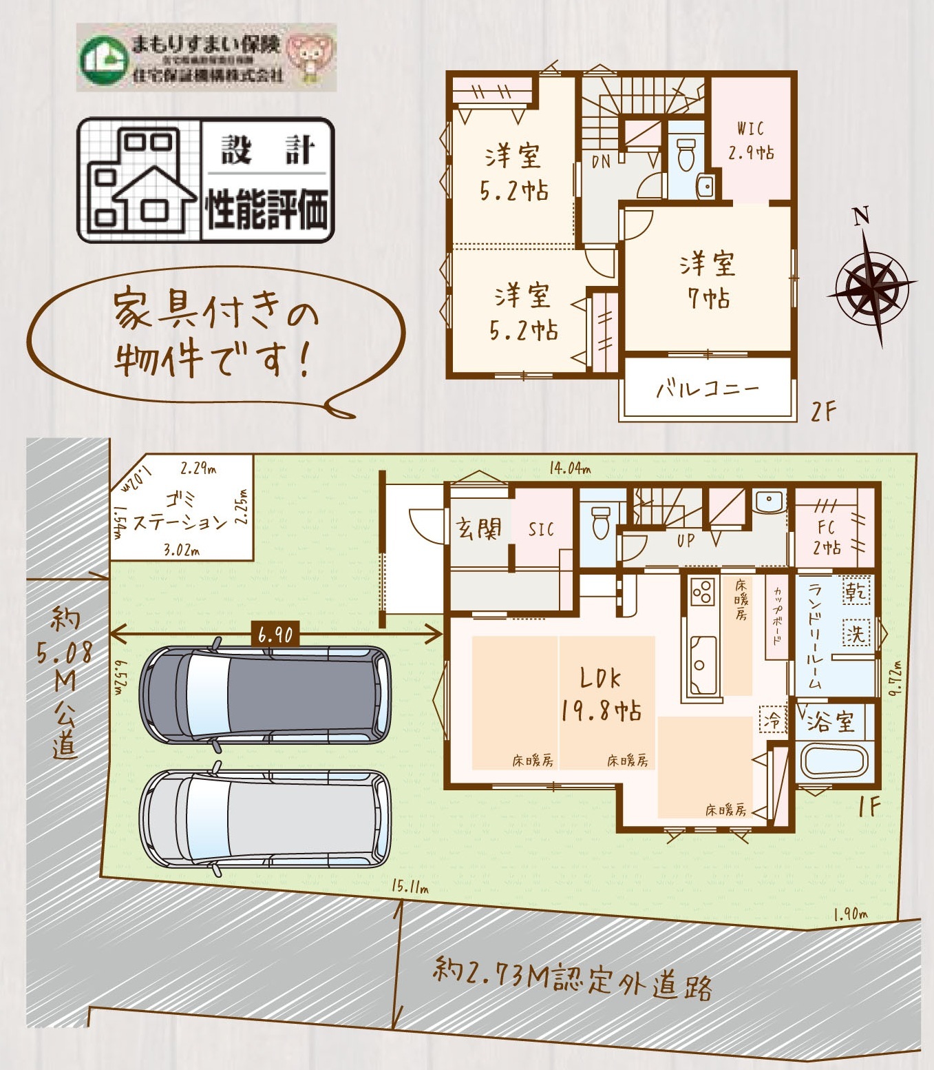 | 設備 | 公営水道、本下水、都市ガス フラット35S金利Aプランが利用できます。住宅保証機構(株)のまもりすまい保険加入予定 |