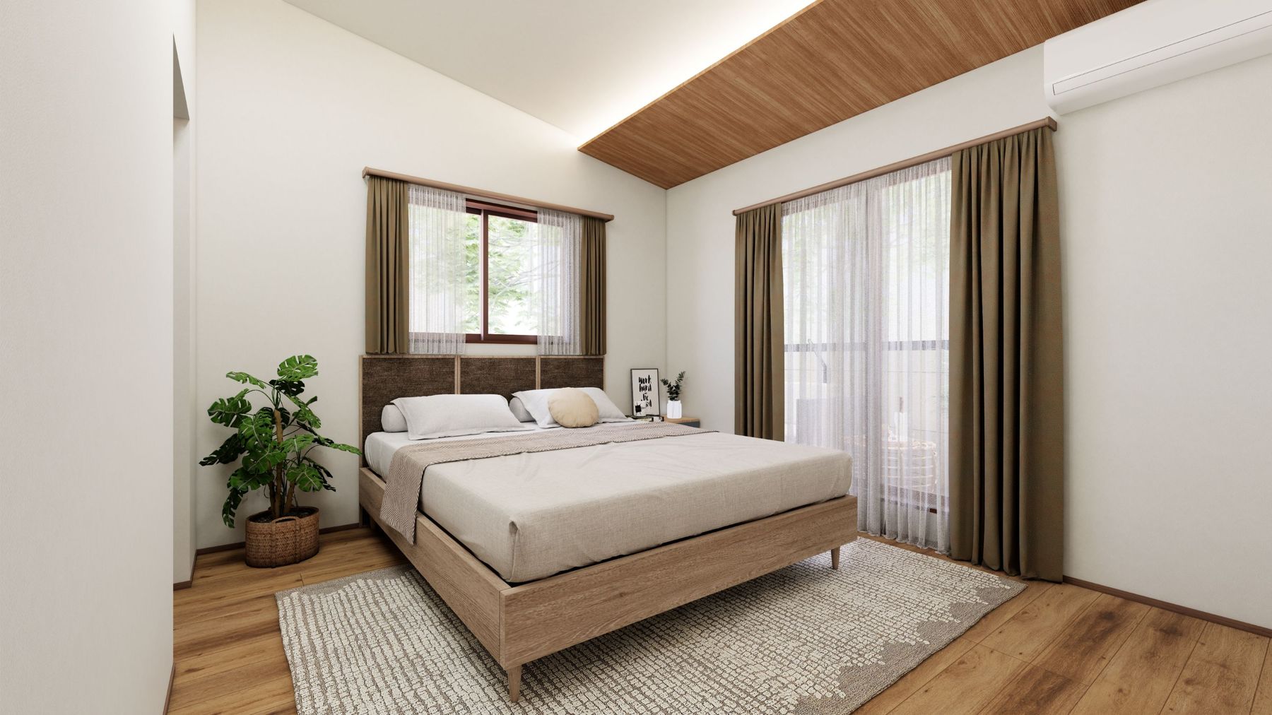 造り付けになっているベッドには、間接照明を仕込み落ち着ける空間になっています。