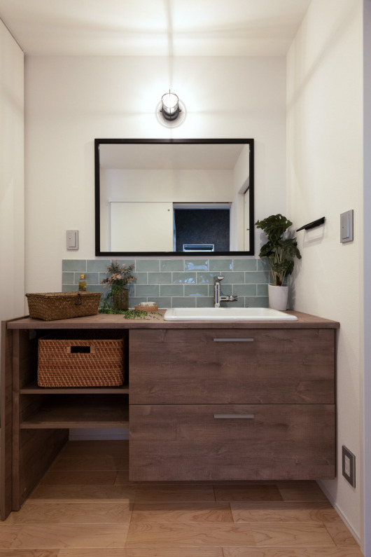 使いやすさを考え、デザインにもこだわった広々洗面室