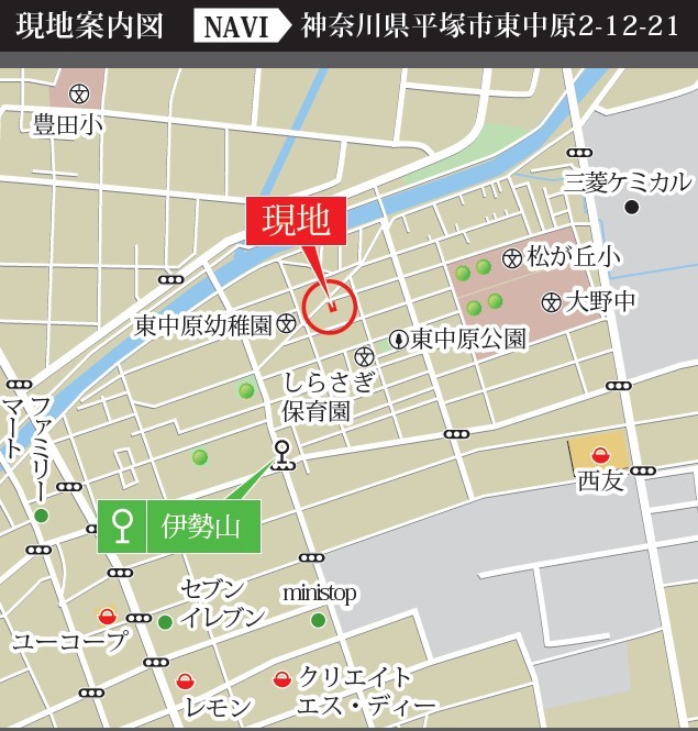 | 交通 | 東海道本線「平塚」駅バス14分 バス停「伊勢山」停歩6分 | ||
