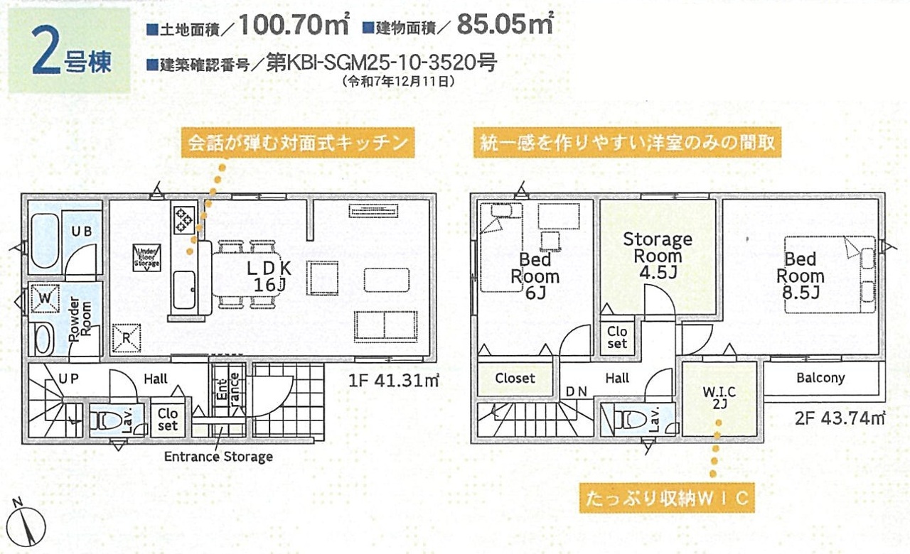 | 建築確認番号 | 第KBI-SGM25-10-3520号他 | 駐車スペース | 2台(カースペース) |