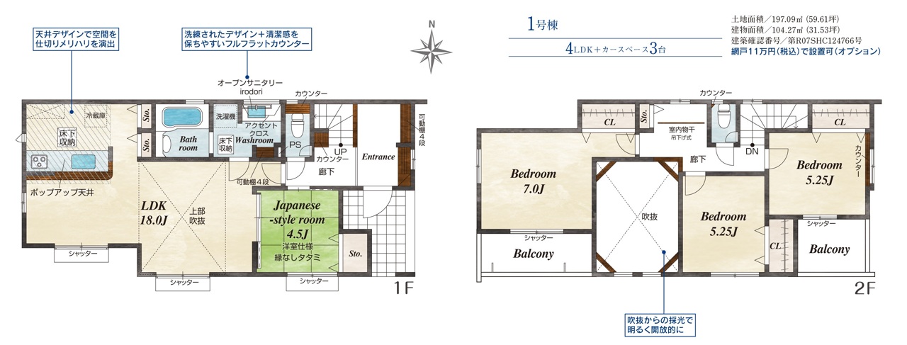 | 間取 | 4LDK (LDK18帖、和室4.5帖、洋室7帖、洋室5.25帖、洋室5.25帖) | ||