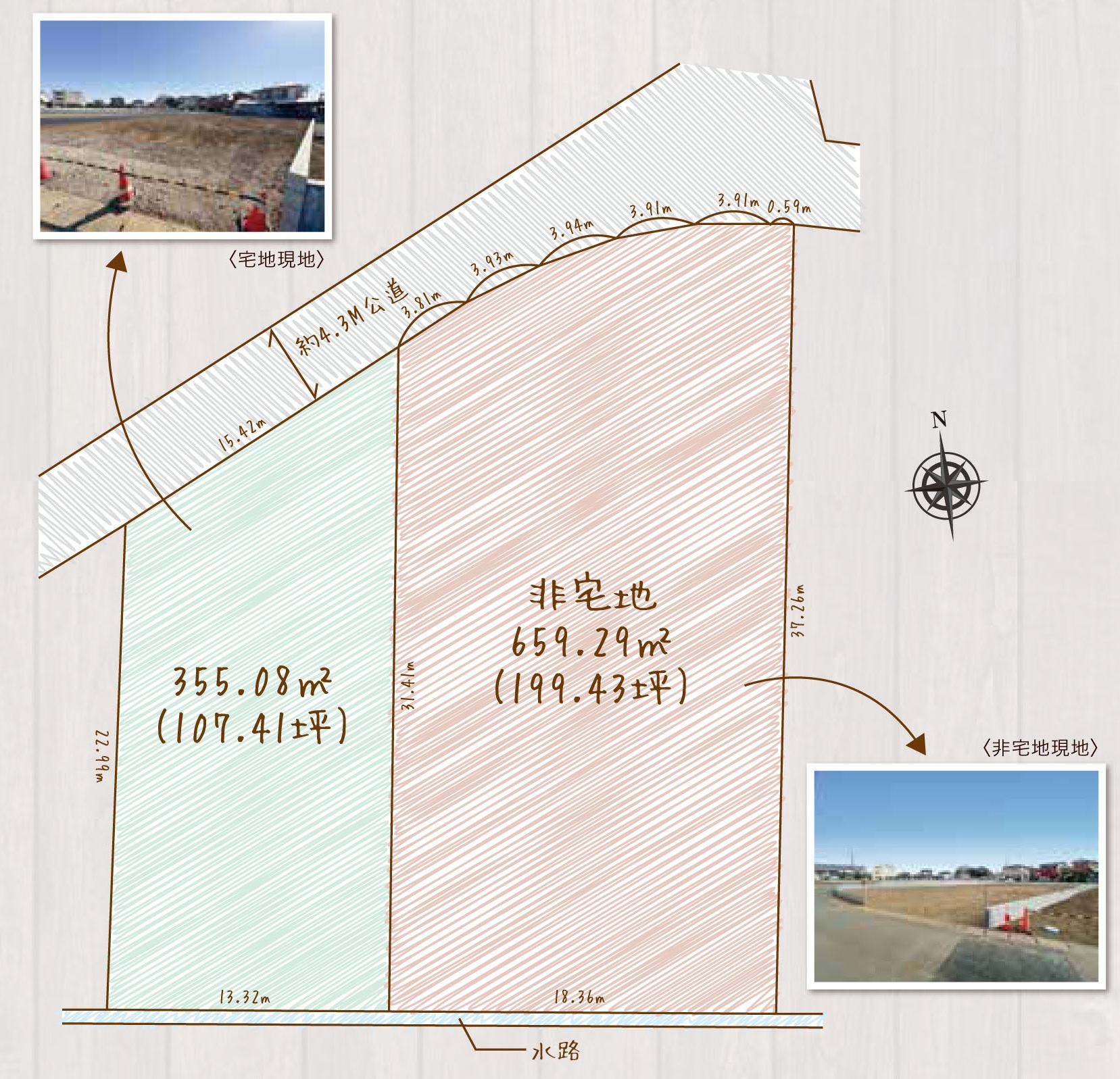 | 土地面積 | 1014.37m² (宅地355.08㎡+非宅地659.29㎡) |