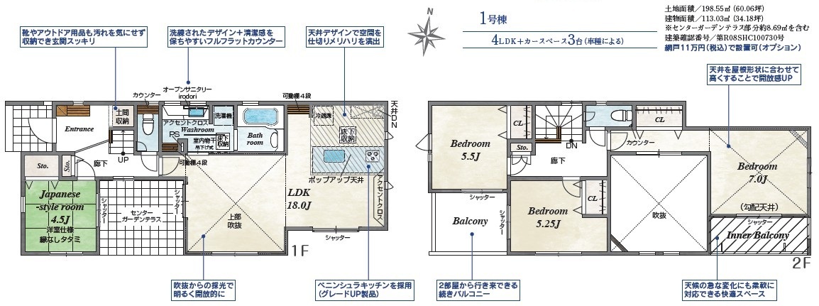 | 建物面積 | 113.03m² (※センターガーデンテラス部分約8.69㎡含む) | ||