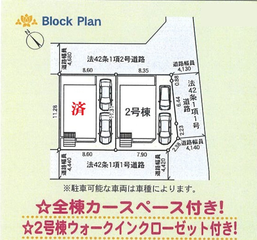 ☆駐車スペースはそれぞれ2台あり(車種による)