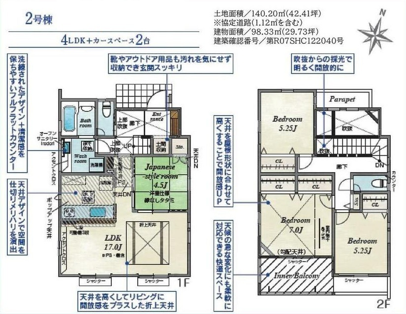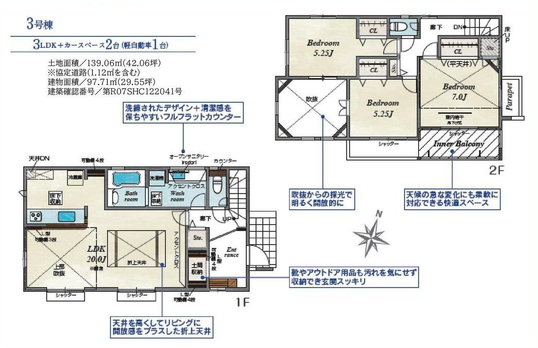 | 建築確認番号 | 第R07SHC122039号 他 | 駐車スペース | 2台(カースペース) |