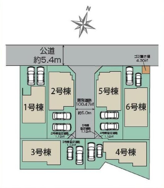 | 備考・制限等 | ※地目は後日宅地に変更 ※開発道路持分(2.3.4.5号棟)1/4あり ※ゴミ置き場持分1/6あり ※第2種高度地区 ※協定道路/敷地面積に含む(2.3.4.5号棟) |