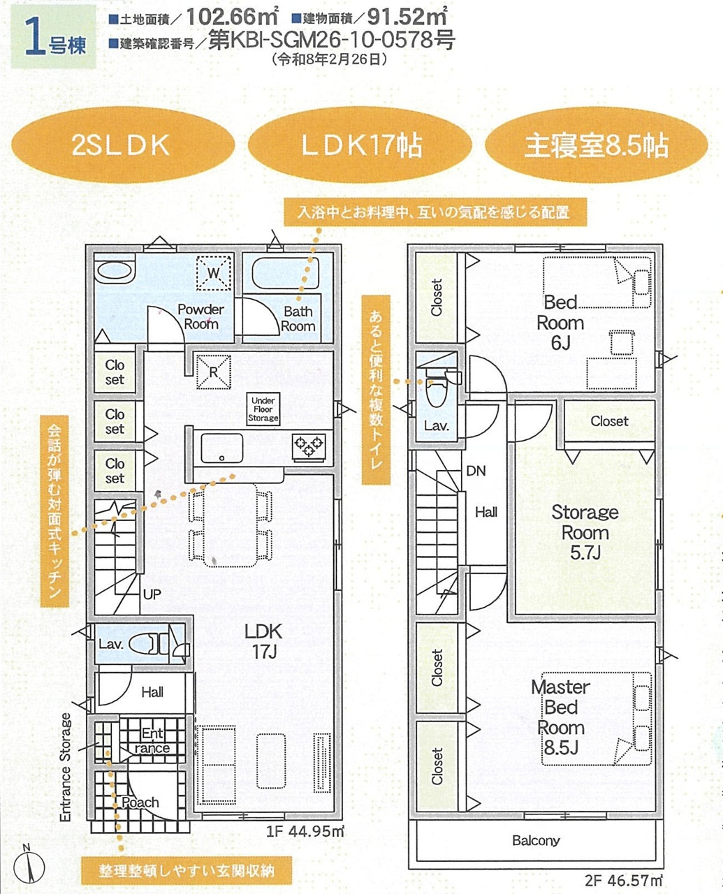 | 建築確認番号 | 第KBI-SGM26-10-0578号 | 駐車スペース | 2台(カースペース:並列) |