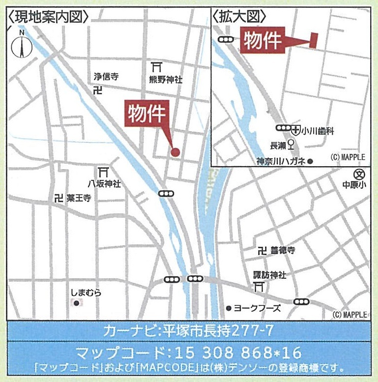 | 交通 | 東海道本線「平塚」駅バス12分 バス停「長瀬」停歩2分 | ||