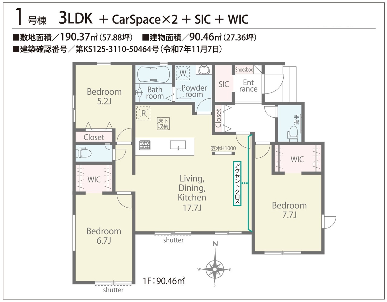 | 間取 | 3LDK + SIC+WIC (LDK17.7帖、洋室7.7帖、洋室5.2帖、洋室6.7帖) | ||