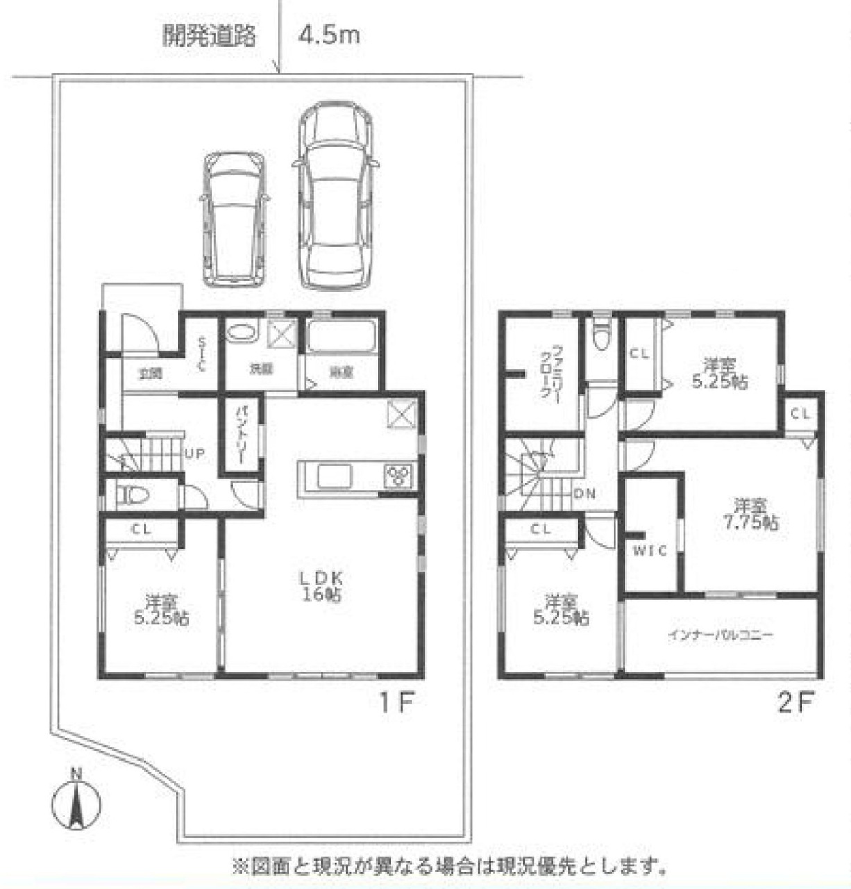 | 間取 | 4LDK + FC+WIC+SIC+パントリー (LDK16帖、洋室5.25帖、洋室5.25帖、洋室7.75帖、洋室5.25帖) | ||