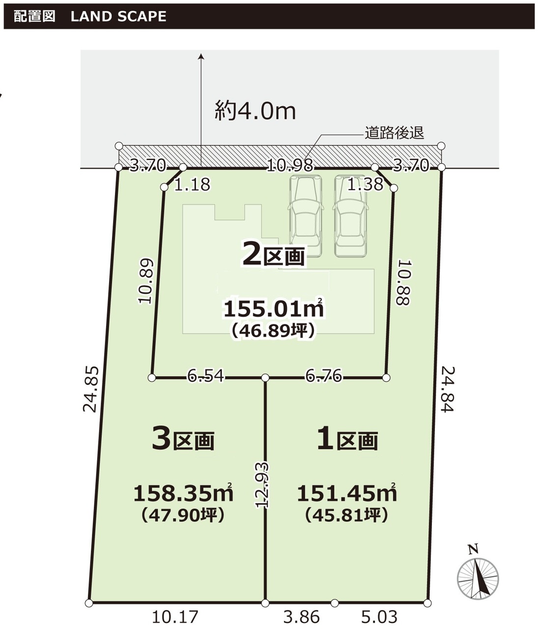 | 土地面積 | 151.45m² ~ 158.35m² | ||