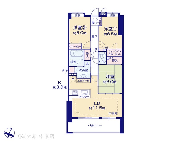 | 間取 | 3LDK (LDK11.5帖、和室6帖、洋室6.5帖、洋室5帖) | ||
