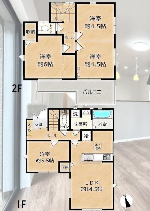 | 間取 | 3LDK (LDK14.5帖、洋室5.5帖、洋室6帖、洋室9帖) | ||