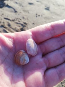 砂浜で、娘や孫と遊びながら拾った貝殻は、帰宅してからビン詰めにしました。