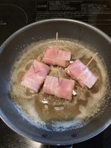 バナナにベーコン巻いて塩コショウして焼くだけ!