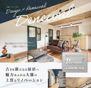 〝Denewal”ディニューアルとは、『大雄×Renewalリニューアル』、大雄のちょっとオシャレなリフォーム、上質なリノベーション工事のこと。