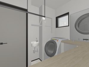 さきほどのCGの場合は洗濯機もランドリールームへ持ってきた為、洗剤の詰め替えなども考えると