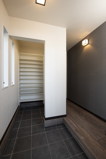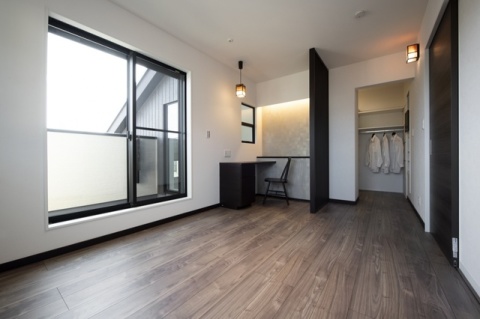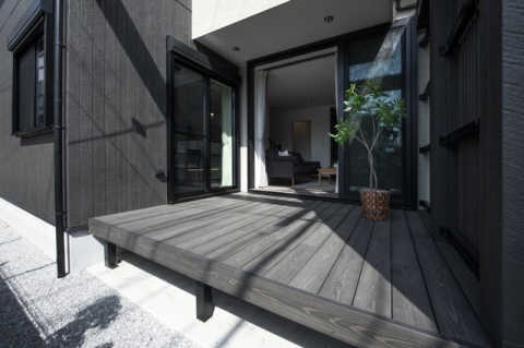 HOME注文・企画住宅和の趣あるホテルライ... 注文・企画住宅 2023年5月4日 和の趣あるホテルライクな家 ■エリア:平塚市 徳延№14企画住宅 ■工法・構造:木造軸組工法 建築ポイント 和モダンテイストの落ち着いた雰囲気の外観。 内観は、ダークカラーがアクセントのシックで上質な大人の空間です。 フラットに繋がるデッキが心地いいリビングは、玄関との明暗差とダイニングの高天井+上部の開口により、シックで落ち着く色調でありながらも、明るく広々とした空間に。 どこか懐かしい和の趣を残しつつ、ホテルのようなモダンで非日常感のあるインテリアを揃えました。 デッキの道路側は格子でほどよく隠され、旅館の濡れ縁のような内でもあり外でもある曖昧な空間は、ゆったりくつろげるプライベートスペース。南側も、シェードを下ろせば隣地も気になりません。 寝室にはDENコーナーを設け、テレワークにも良い半分囲われたスペースに。 広々WICは押込収納で小物も仕分けでき、階段で上れる小屋裏収納等、使い勝手のいい収納スペースもしっかり確保しました。 家にいても、休日はホテルのような空間でゆっくりしたい。 家事動線や収納をしっかり確保し、生活感がにじみ出にくい、上質な住まいです。