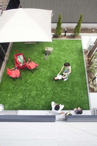 HOME注文・企画住宅人工芝が気持ち良い広... 注文・企画住宅 2023年5月2日 人工芝が気持ち良い広々お庭で遊べる家 ■エリア:平塚市御殿 No.7企画住宅 ■工法・構造:木造軸組工法 建築ポイント 広々と人工芝を敷き詰めたお庭。 友達家族が集まって炭火調理などのBBQと、お家のキッチンや冷蔵庫があるからできるパーティー料理などの良いとこどりを。 普通のお家じゃ置けないような海外製の滑り台やプールなどの大きいサイズの遊具も置ける。裸足で子供たちが走り回り笑い声が響く。 ガーデンライトもほんのりと灯る、自分たちだけの特別な空間。 外観は飽きのこないシンプルモダンスタイルの家。内観はビンテージ風の扉や壁など西海岸を思わせるスタイル。 武骨で大人の雰囲気の1Fと明るく柔らかい雰囲気の2F。印象は違うけれど、どちらもサーフスタイルやカリフォルニアスタイルなど海を感じさせる空間です。 友人を招いた時にゴミ箱や食器棚、冷蔵庫を隠すパントリー。 L字のキッチンはお客様には中を見せずに、一歩で動けて機能的。 キッチン横にはDENコーナーを設け、レシピを調べたり、家計簿を付けたり。 LDKはリビングがより広く見えるように、天井の高さを変化させ、化粧梁がアクセントに。 2階はゆとりの4室。お洗濯部屋にしてもよし、書斎にしてもよし、ちょっぴり足りなく感じる収納は6帖の大きな小屋裏収納へ。 休日遠出しなくてもお家で遊べてリフレッシュ、床暖房や食洗機、ガス衣類乾燥機など共働きの増えた今のご家族構成にぴったりな住まいです。
