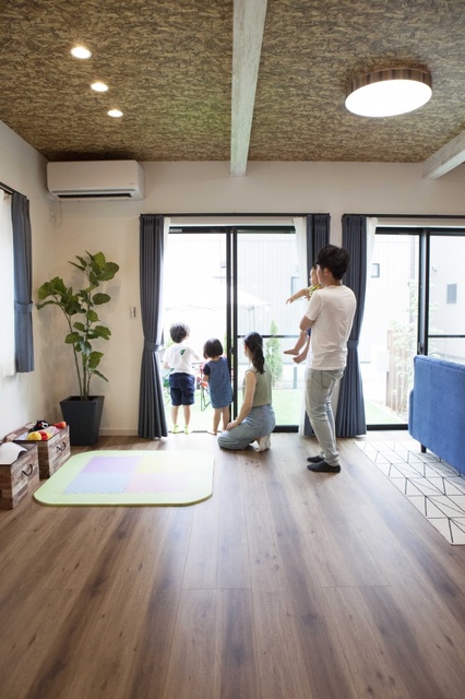 普通のお家じゃ置けないような海外製の滑り台やプールなどの大きいサイズの遊具も置ける。裸足で子供たちが走り回り笑い声が響く。
