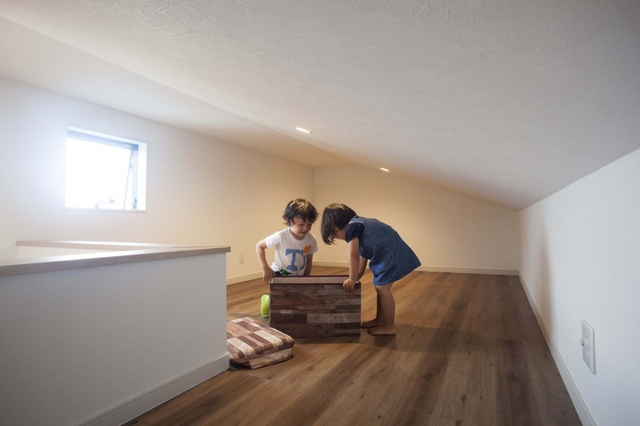 2階はゆとりの4室。お洗濯部屋にしてもよし、書斎にしてもよし、ちょっぴり足りなく感じる収納は6帖の大きな小屋裏収納へ。