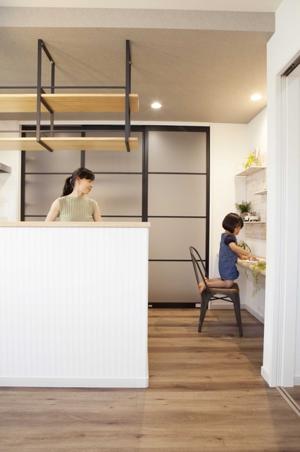 キッチン横にはDENコーナーを設け、レシピを調べたり、家計簿を付けたり。