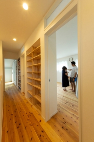 2F廊下には一面に書籍が並ぶ、ご主人こだわりの家族共有ライブラリー空間。