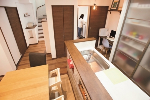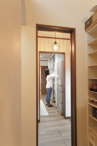 こだわりの生活動線は、玄関~パントリー~キッチン~洗面と、とても使いやすく効率の良い配置に。