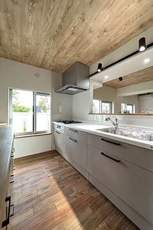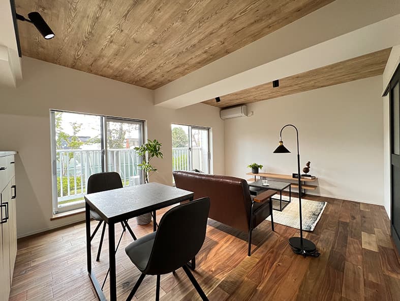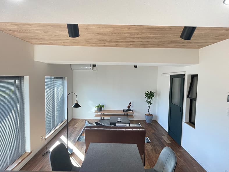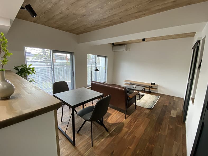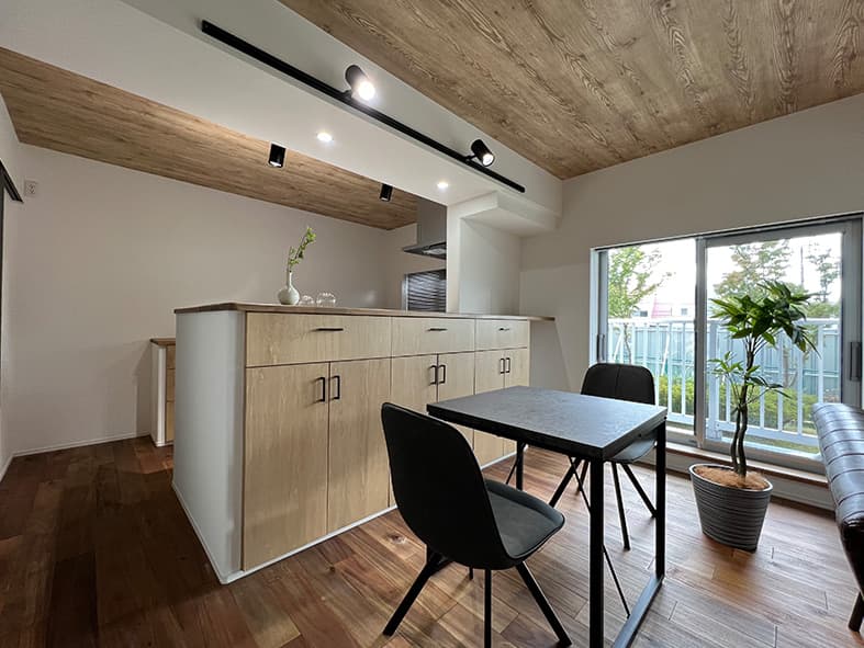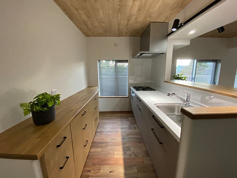 LDKとして一つにまとめることでエアコン1台で快適に過ごせるようになり、背面キッチンを対面式に変更することで開放的な空間になりました。