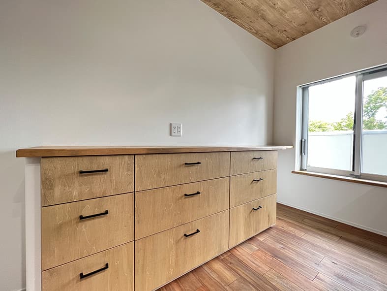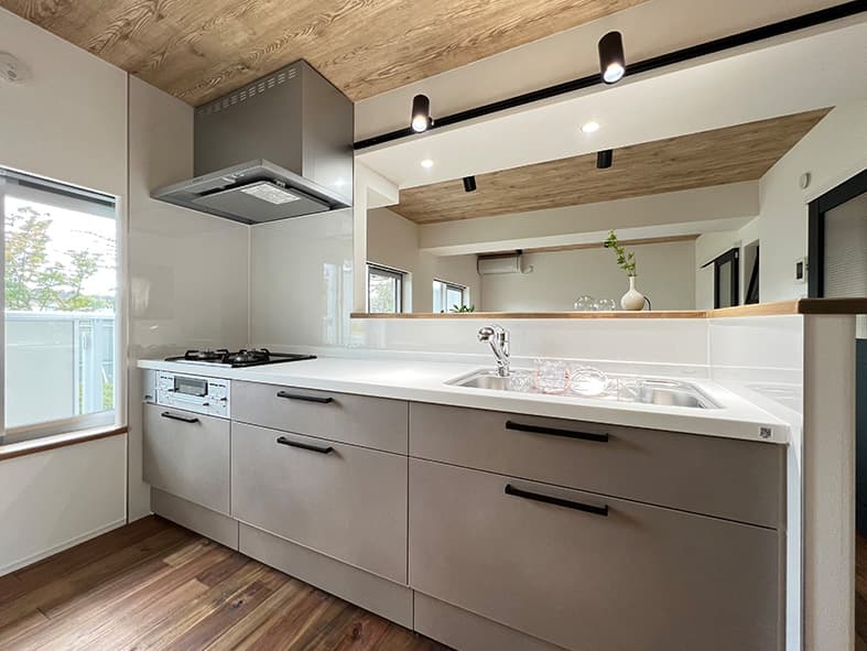 TVボード面、キッチン背面はオーダーメイドできるように下地を入れており、