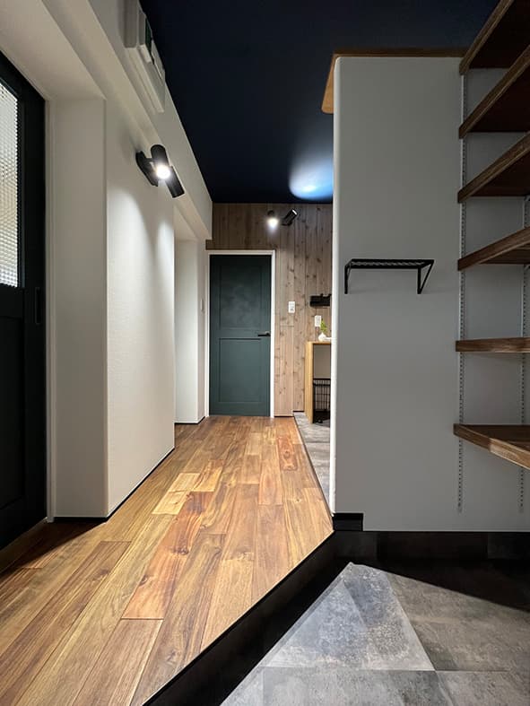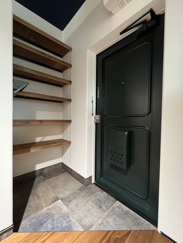 今回のリフォームでエアコンを取付できるよう設計し、南北の風通しが良くなるように風窓を設置、各ドアにデザインガラスを入れ明るさを確保しました。