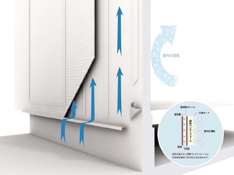 住まいの目に見えないリスク。それは壁内結露です。壁の中で結露が起こると住まいを支える木材にカビや腐食が起こります。SW工法の高い気密性と耐水性の高い硬質ウレタン断熱材が壁内結露を防ぎ、住まいを長持ちさせます。