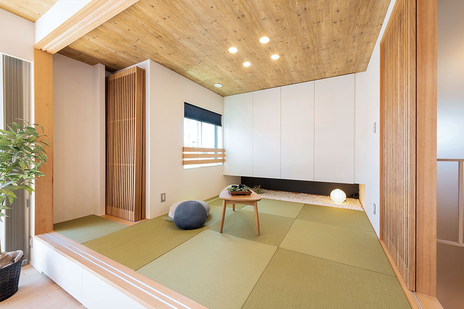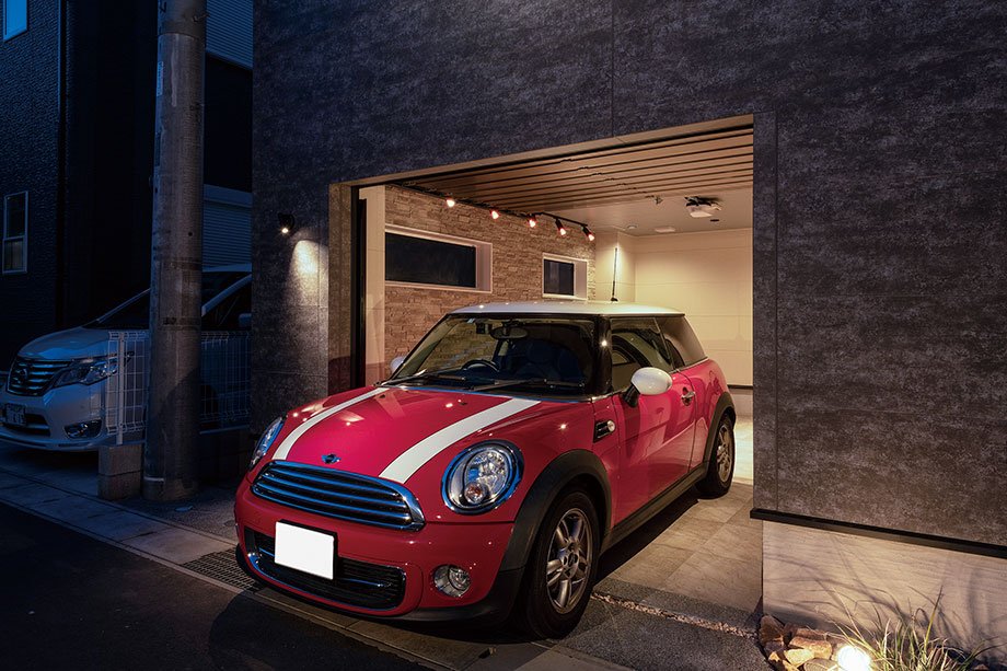 愛車を満喫するインナーガレージ、坪庭を楽しめる露天風呂のような浴室、ホテルライクな寝室。暮らしの中で感じられる「非日常」を演出。