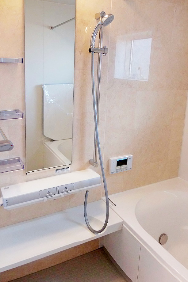 お風呂には浴室暖房乾燥機はもちろん、プッシュ式ハイグレード水栓や節水シャワー、冷たさを感じにくい床や汚れがつきにくく保温性のあるクリーン断熱浴槽を採用。