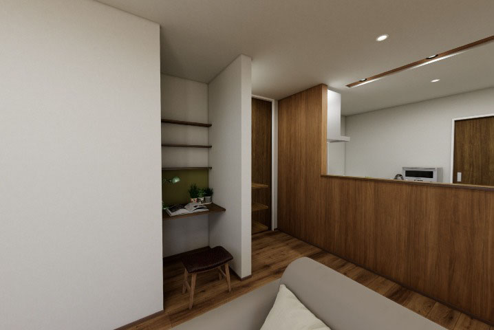 日常の中に、ちょっとだけ自分の時間を。囲われたカウンターコーナーが、暮らしに心地よいゆとりをもたらします。