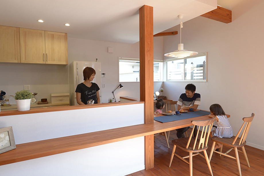 お客様を通す動線、帰ってきたら手を洗うなど子育ての教育的な動線など、行き戻りの少ない動線は共働きで時間がない、少しでも効率よくと考える現代家族には必須なポイントです。