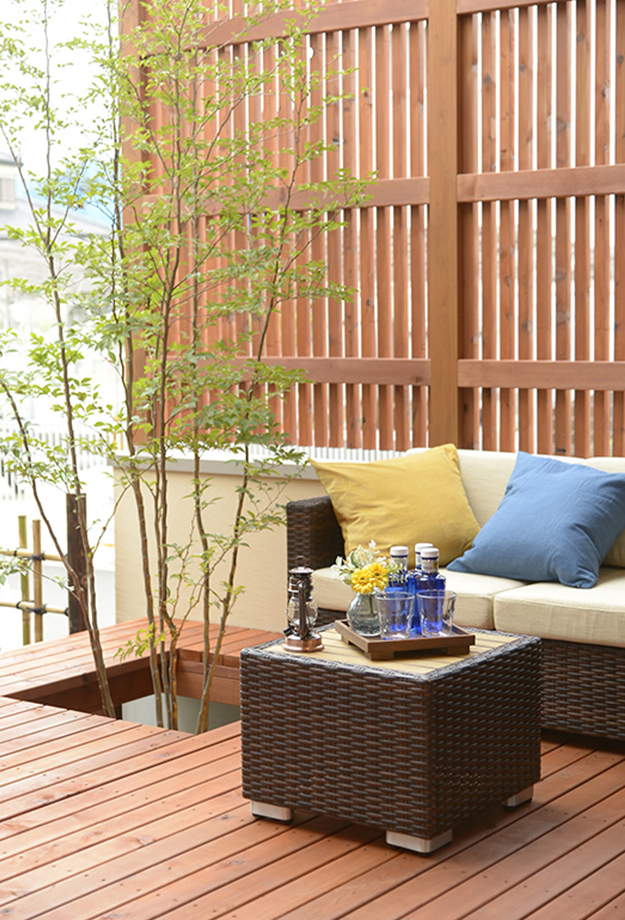 外からの視線を緩やかに遮る格子によって、適度なプライバシーを確保した居心地の良い空間です。