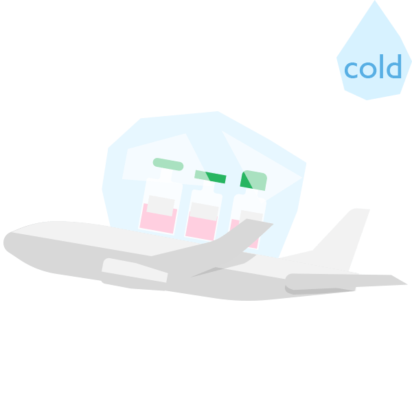 製造されたワクチンは冷凍のまま空輸で、支援国へ届けられます