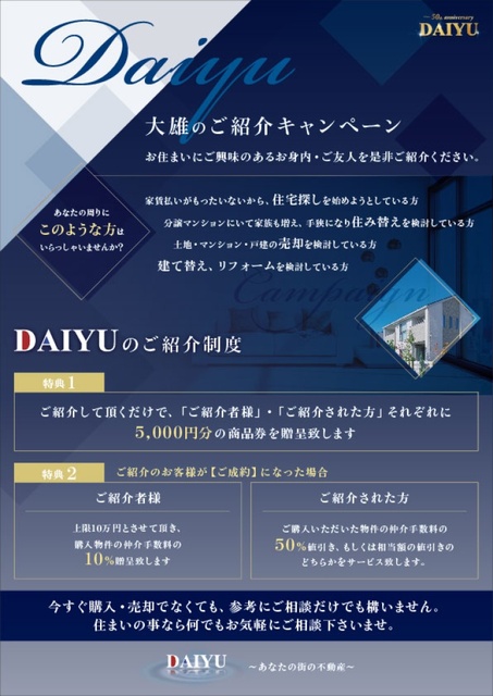 お住まいにご興味のあるお身内・ご友人を是非ご紹介ください!!