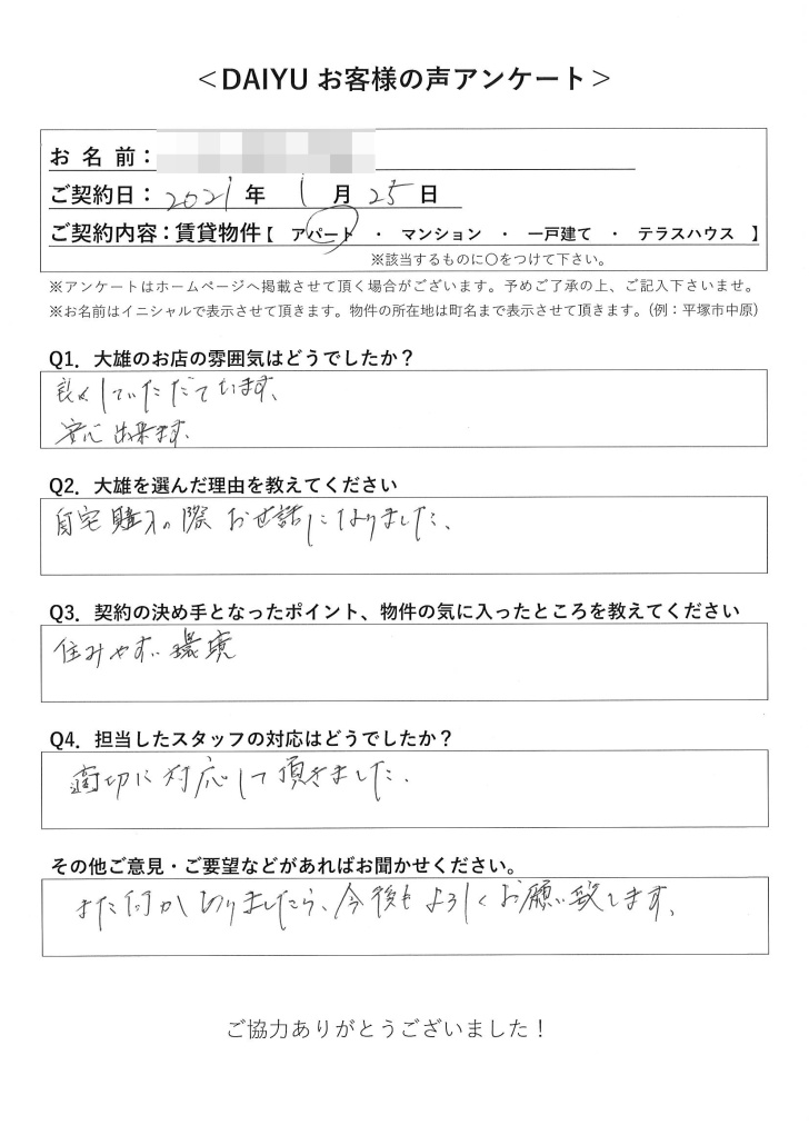 賃貸物件のご契約も頂き、ありがとうございました。
