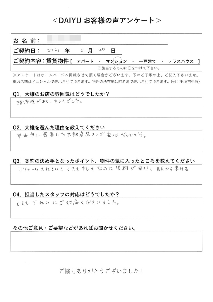 CUSTOMER'S VOICEお客様の声【賃貸物件】