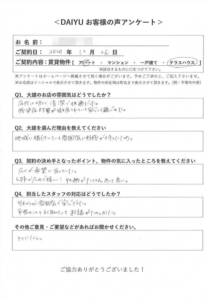 CUSTOMER'S VOICEお客様の声【賃貸物件】