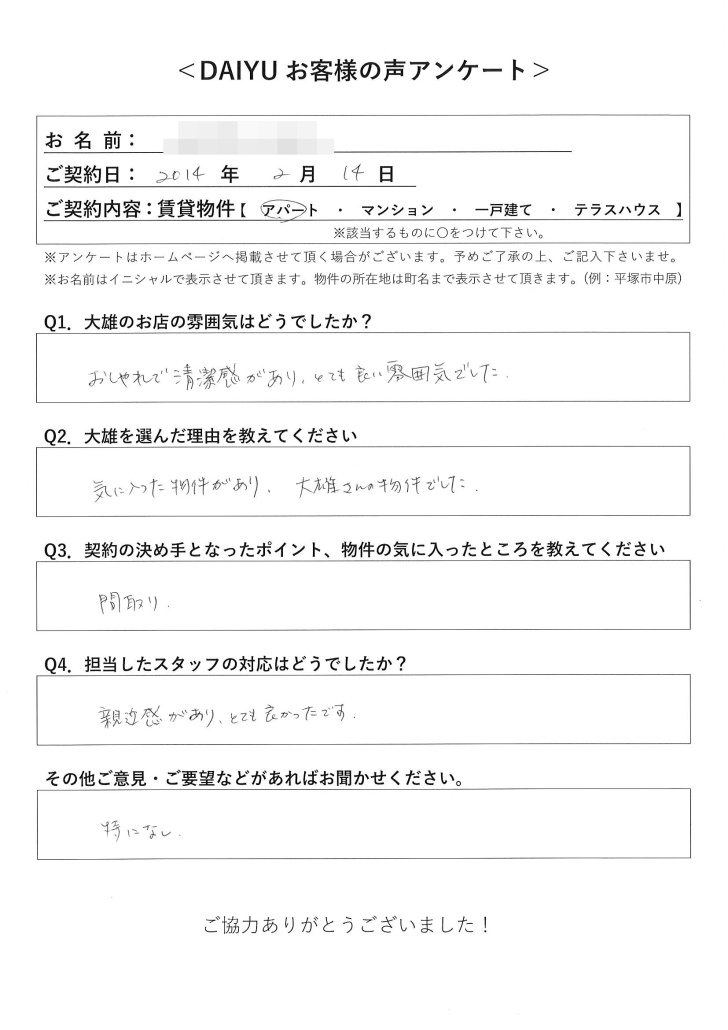 CUSTOMER'S VOICEお客様の声【賃貸物件】